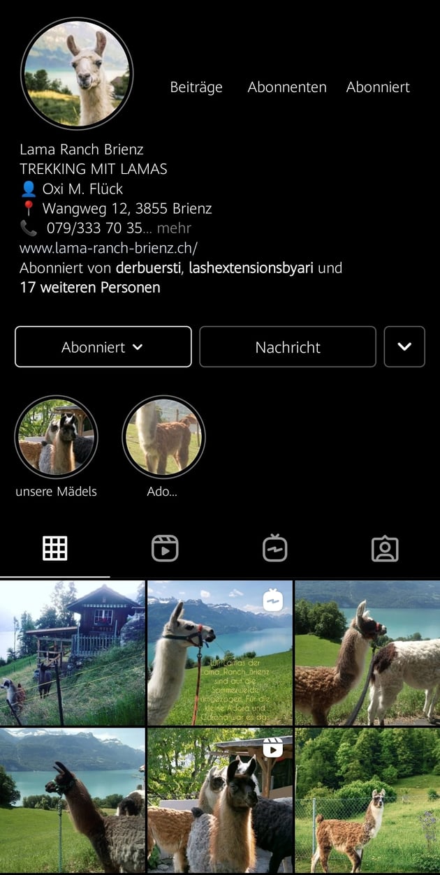 Also erlangte ich den Sachkundenachweis zur Haltung von Lamas und schaffte mir die ersten Lamas an. Seither wächst die Lama Ranch Brienz...